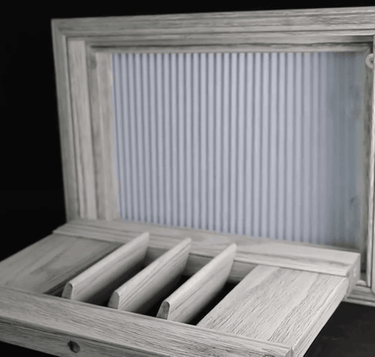 The technology used in our blackout shutters provides two levels of protection: a shutter and a honeycomb blind, thanks to a specifically constructed frame that allows an integrated blackout honeycomb blind to fit inside the shutter frame. This unique design ensures that no light can enter the room, providing complete darkness whenever you need it.