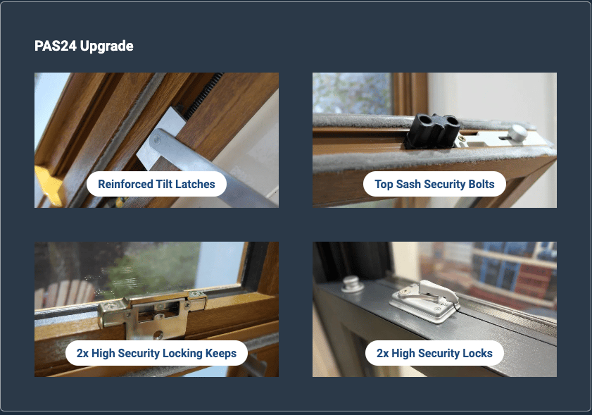 Our double glazed sash windows deliver the most advanced levels of security without adding complex operations. They are practical and come with all the safety features a homeowner would need. They have the option to take advantage of a comprehensive high security PAS 24 package, which meets the latest requirements for new builds.